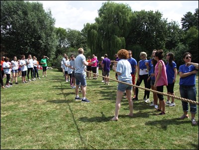 We provide everything needed to run the Corporate Sports Day including the lane markers, bunting, team sashes, all stakes and bunting, (plain or branded t-shirts provided from a bulk supplier are also available at additional cost), PA system, upbeat lively music, professional compere and staff to run the games, tug of war rope, blackboard scoreboard, the games and activities themselves. All we need you to provide is the venue and the participants.