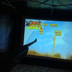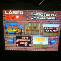 There is a choice of rifles and pistols to suit all and are are authentic size and shape but are recoil free and fire a safe laser beam only at the various targets on the state of the art LCD projector screen.