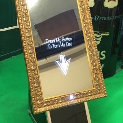 Brand new for 2016, our magic selfie mirror is an interactive free standing mirror which verbally and audibly interacts with users, offering compliments and cheeky remarks when taking their photos.