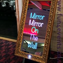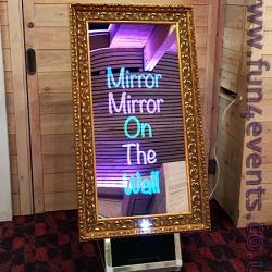 The fully animated mirror takes your photos and automatically prints them, but after each shot the mirror talks to you, with a fun random response verbally & shown on the screen too. The magic mirror takes on a personality of its own, with humorous compliments and cheeky comments too.