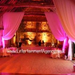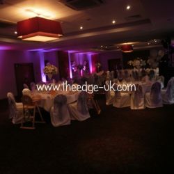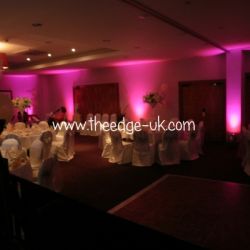 During the evening we can programme the uplighters to cycle through a number of colours or change to the beat of the music, helping to create an excellent atmosphere.